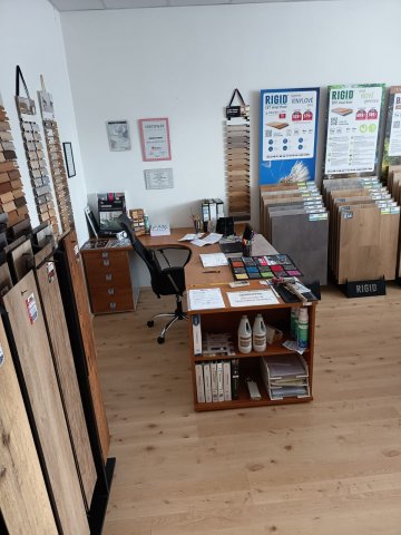 Vinylové dílce Thermofix + zátěžový koberec, přechodové lišty ( kaple)